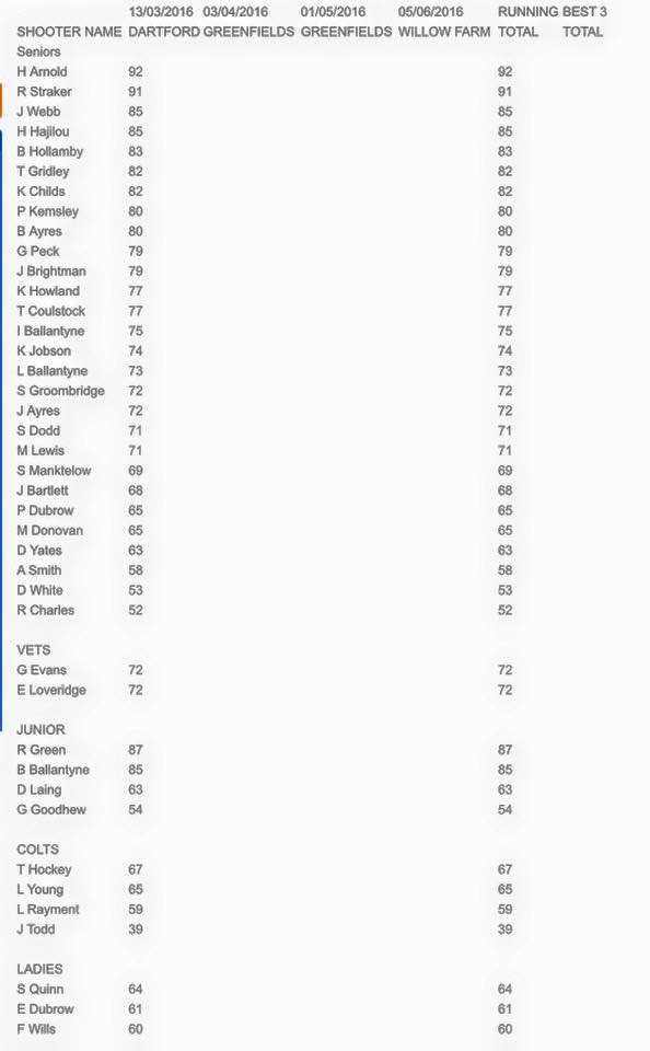 Would just like to also say a well done to our sponsored shooters Ronnie Green 87 joint 5th Overall And Junior Winner, Bradley Ballantine 85 2nd In A, and our little own Tristan Hockey 67 2nd in C Class and Winner Of Colts well done you all and thanks to Scott for getting them up there well done boys.