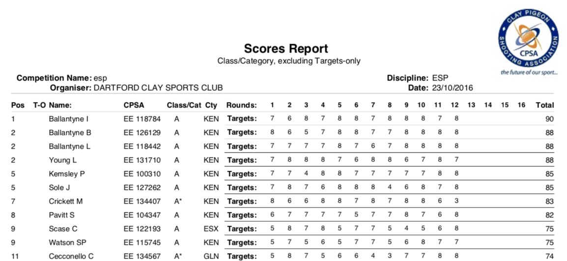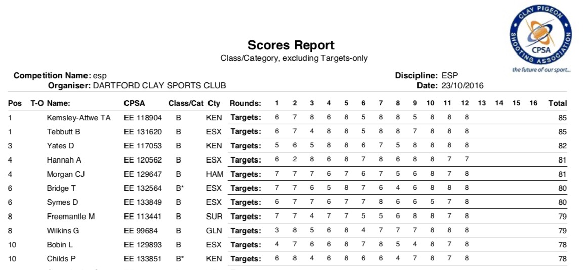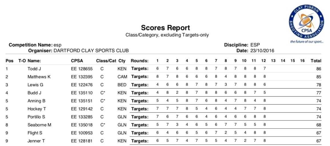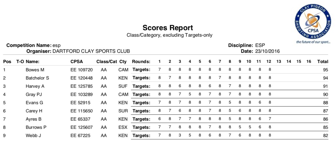 Some great shooting all round in all classes.