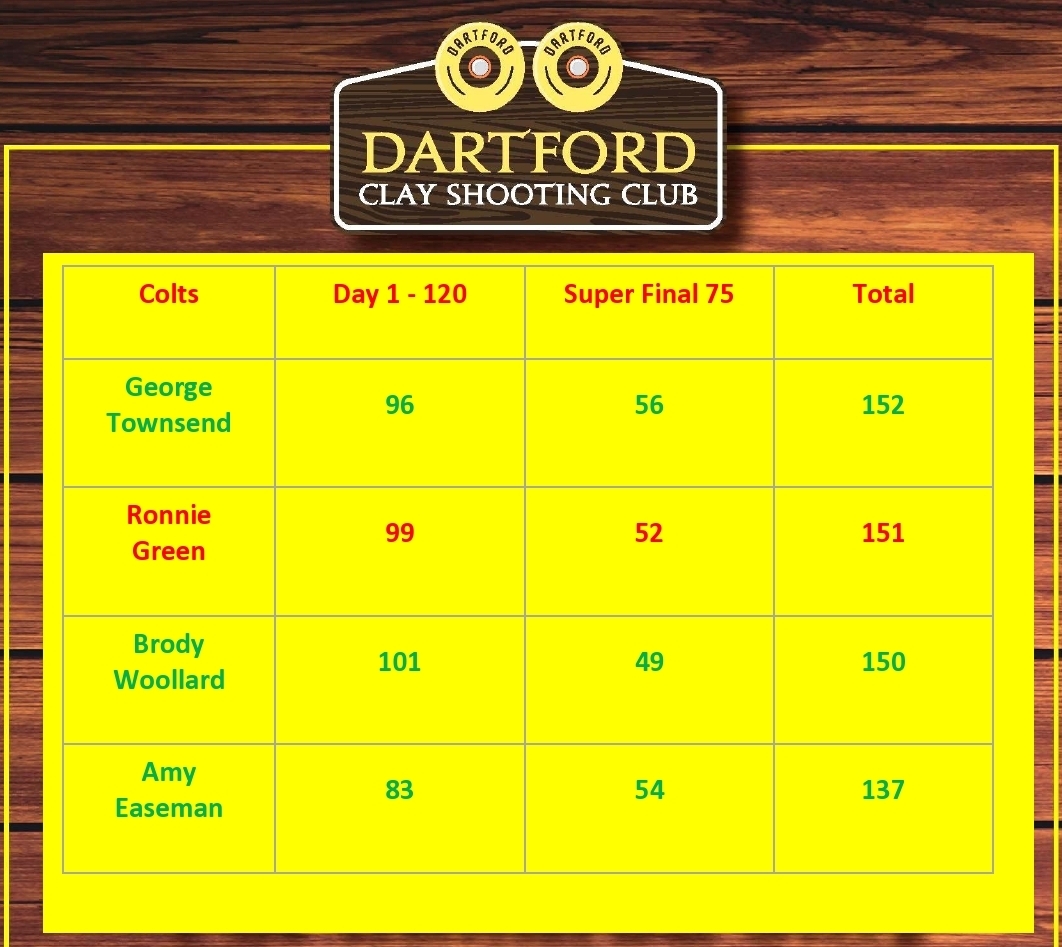 Day 1 was the 120 bird sporting course of which Ronnie put a strong score of 99/120 leaving him in 2nd place for the day behind Brody Woollard who's scored 102/120 and George Townsend 96/120 3rd all three scores were worthy of a senior performance and put them in the Colts Super Final on the Sunday.