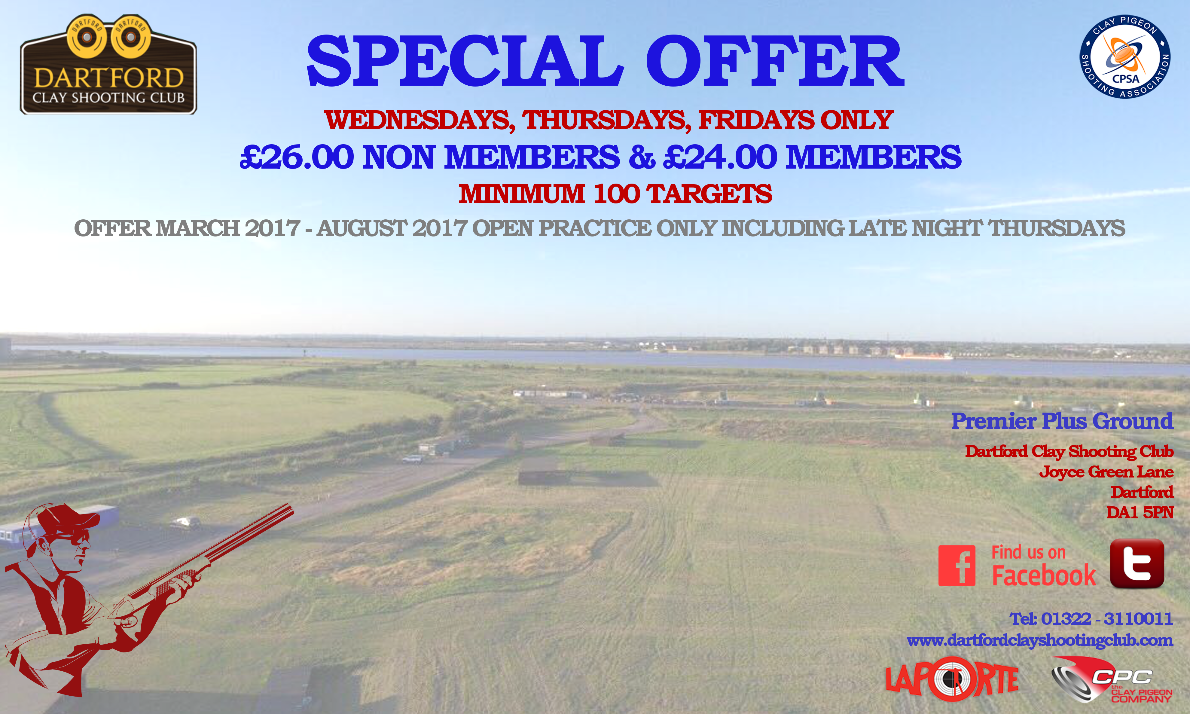 SPECIAL OFFER 2017 WEDNESDAYS, THURSDAYS, FRIDAYS ONLY £26.00 NON MEMBERS & £24.00 MEMBERS MINIMUM 100 TARGETS OFFER MARCH 2017 - AUGUST 2017 OPEN PRACTICE ONLY INCLUDING LATE NIGHT THURSDAYS