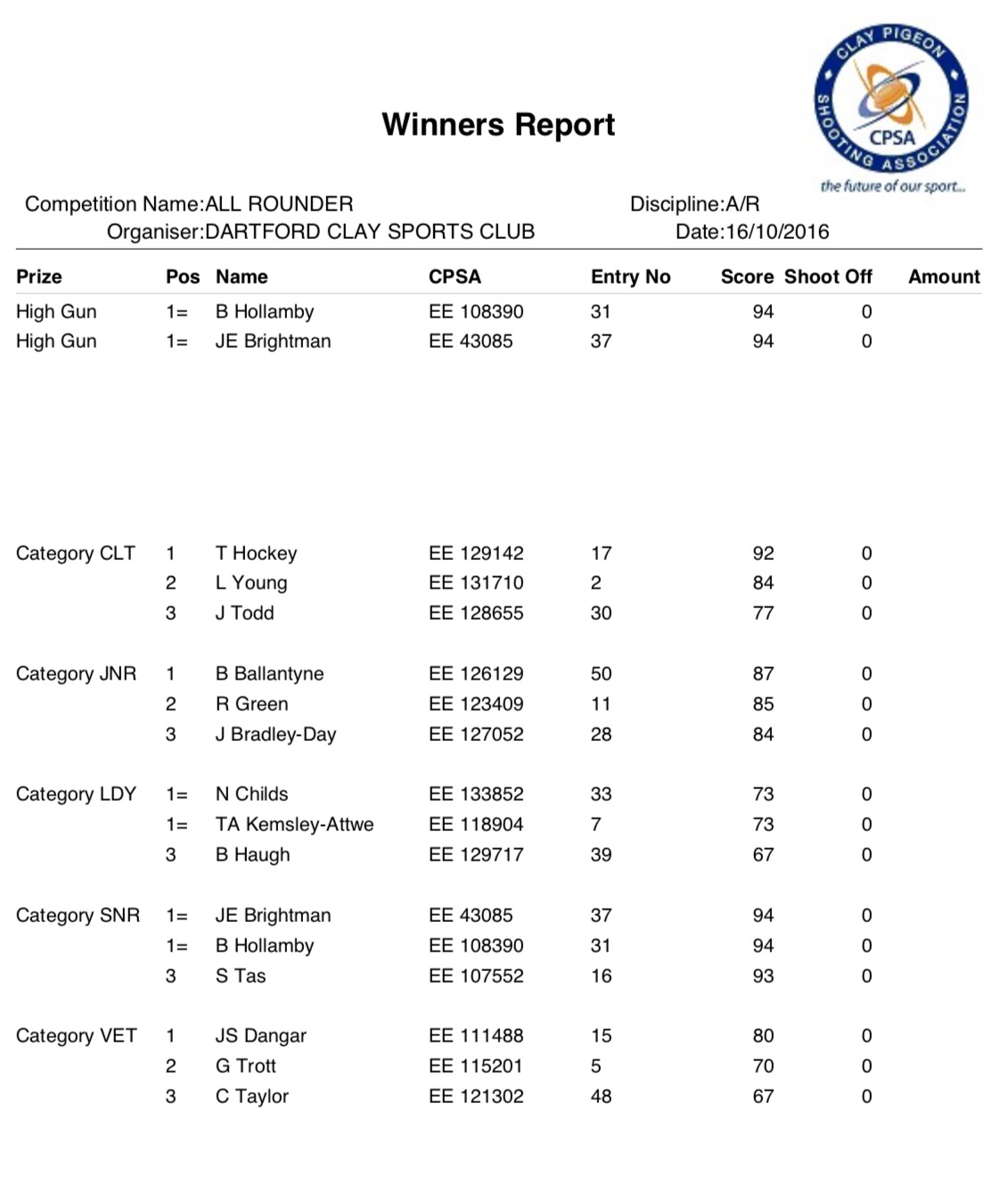 Some great shooting all round in all classes.
