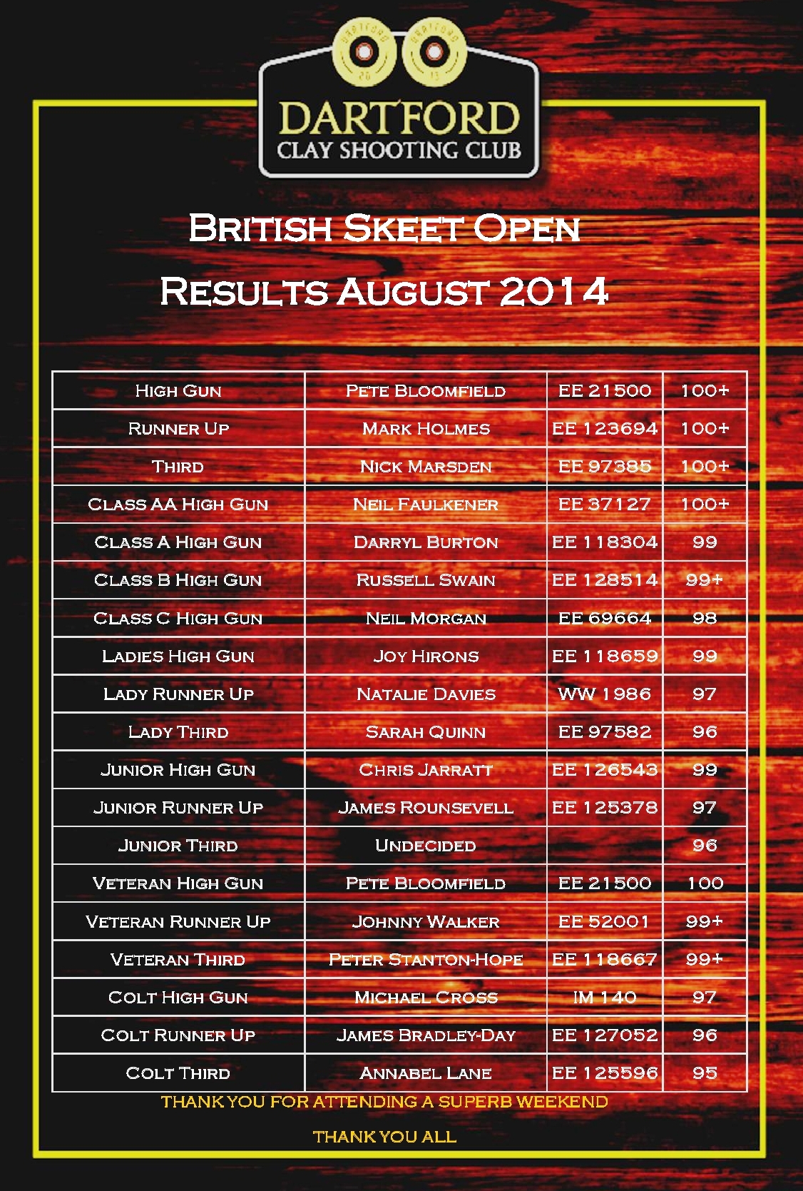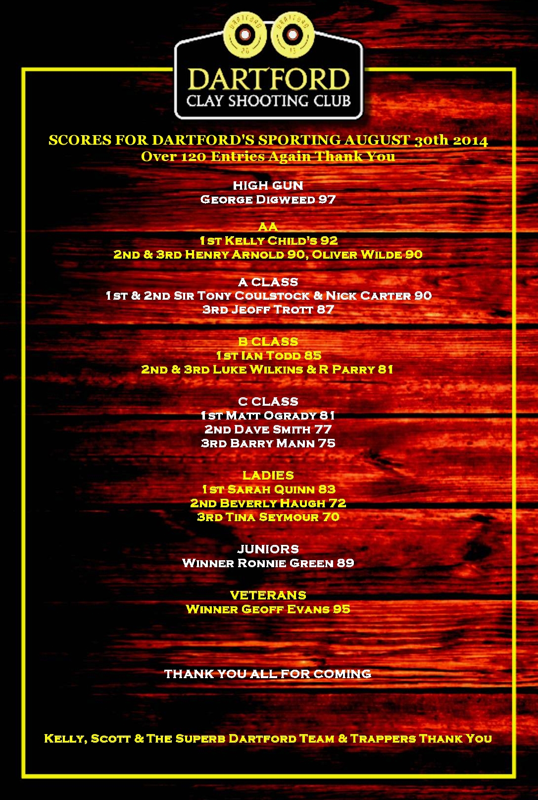 We at Dartford Clay Shooting Club the entire team would just like to say a BIG THANK YOU to all you shooters that are making this club so busy and special from Sporting,Skeet, and Trap Shooters the Atmosphere is back the ground is buzzing. A massive thank you to my team...