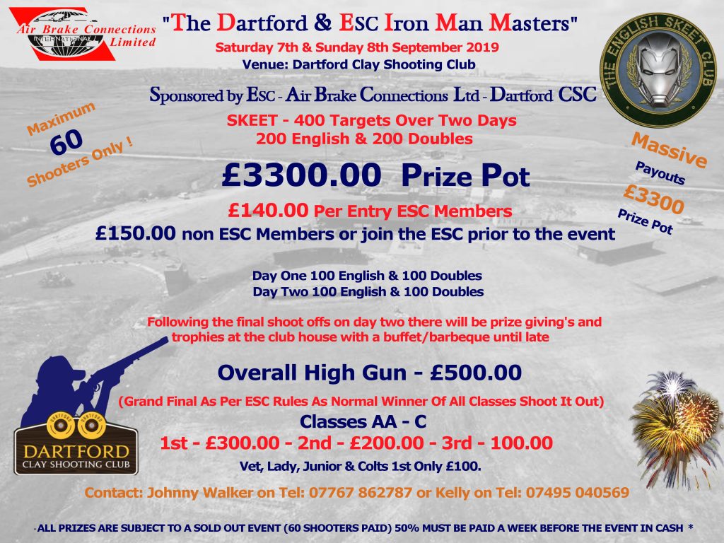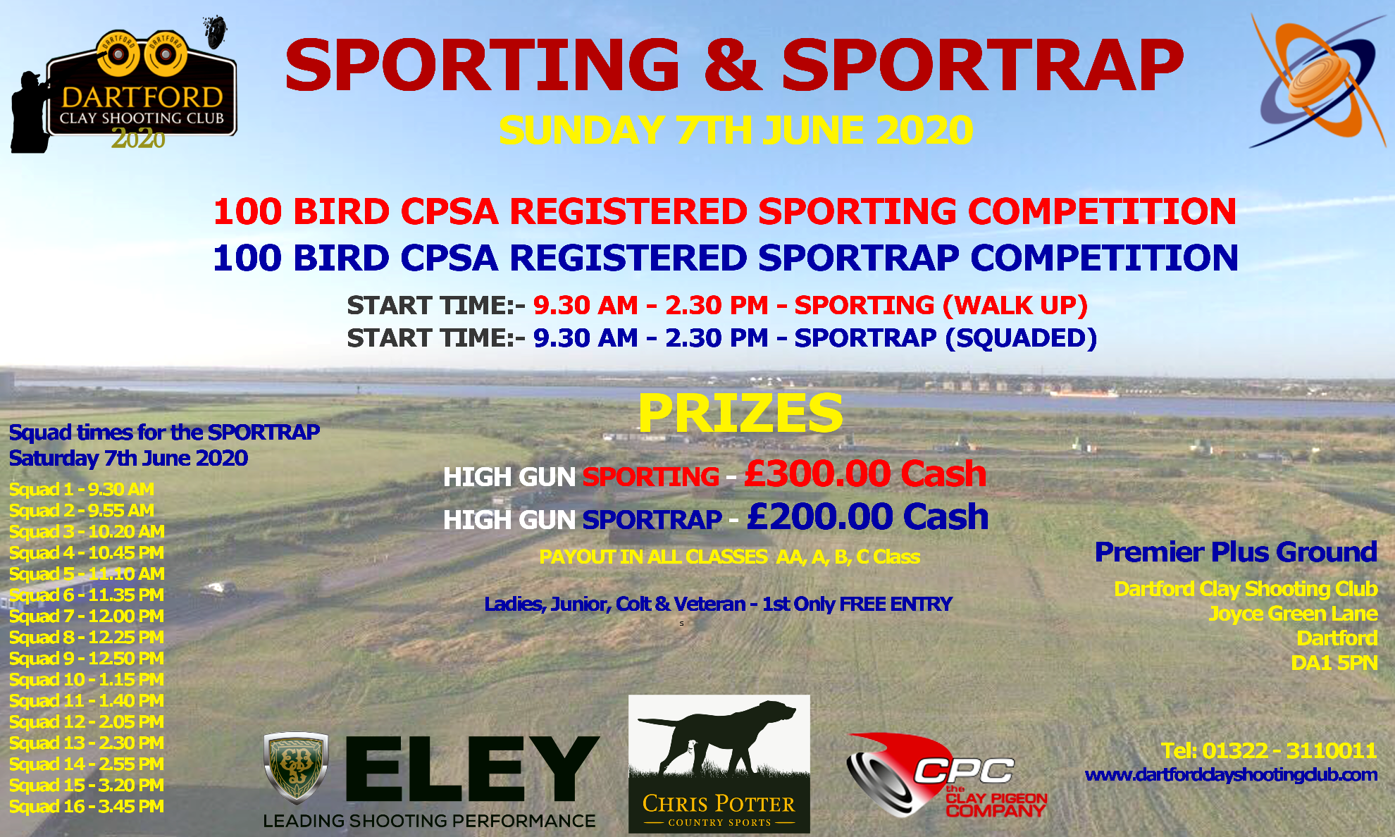 *ALSO NOTE* Dartford CSC will be holding a NON Registered 100 Bird Shoot (Cartridge Shoot) once a month along with our CPSA Registered Sporting & Sportraps. Non Registereds will be 2nd...