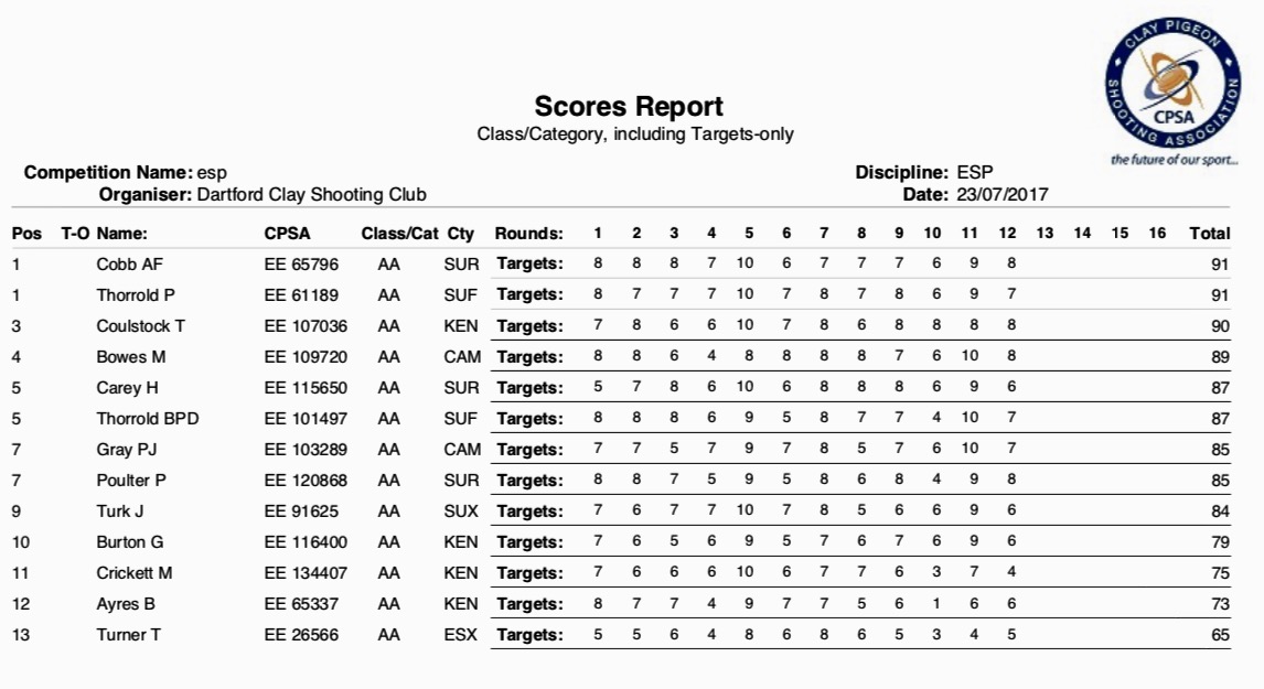 Kent Championships - Southdown Gun Club - 16th July 2017